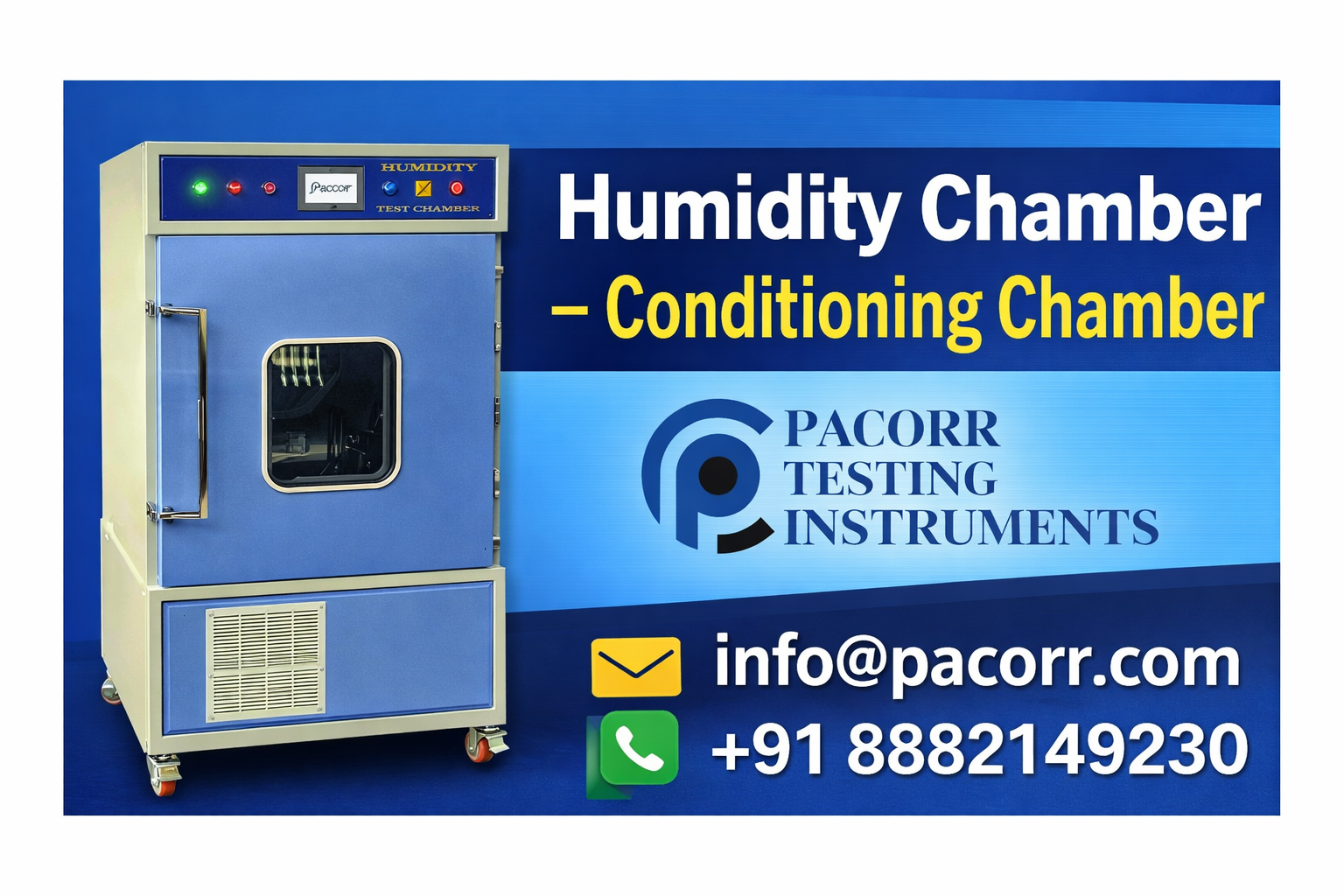Humidity plays a vital role in determining the quality, durability, and performance of materials and finished products. To ensure accurate evaluation under controlled conditions, our Humidity Chamber – Conditioning Chamber is designed to deliver precise and stable humidity environments for reliable testing and conditioning.